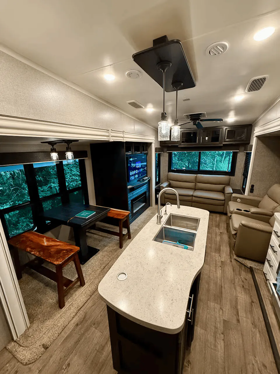 El Camper es una casa rodante fija, amplia y acogedora, ideal para hasta 5 personas. Ubicada muy cerca de la montaña, ofrece una vista completa al paisaje montañoso. Cuenta con jacuzzi exterior y parrilla para asar carne, creando el espacio perfecto para compartir momentos bonitos y disfrutar de la naturaleza con total comodidad.